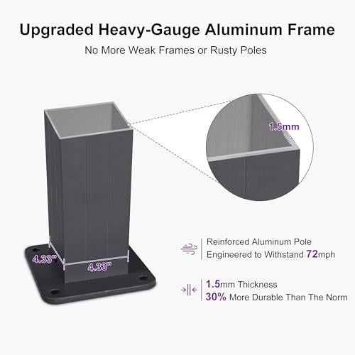 - The 4.3" wide aluminum posts provide robust, stable support with a sleek, modern appearance. Durable and rust-resistant, they guarantee long-lasting reliability for your outdoor area.