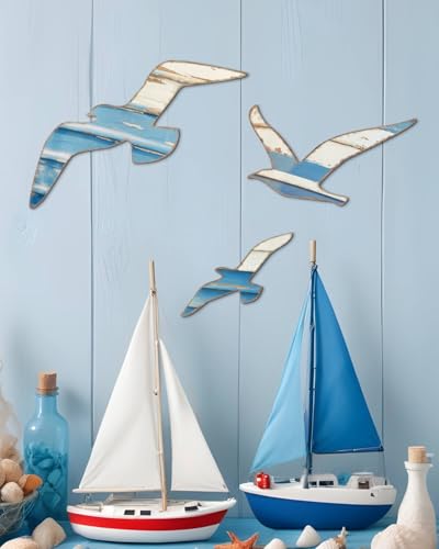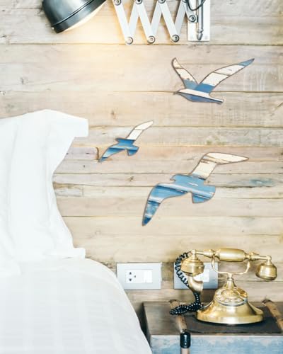 Putuo Decor 3pcs Wood Nautical Decor Seagull Wall Decor Nautical Coastal Theme Wall Art Adhesive Seagull Wall Sculpture Sea Birds Lake House Ocean Decoration Vintage Ornaments For Home Bathroom