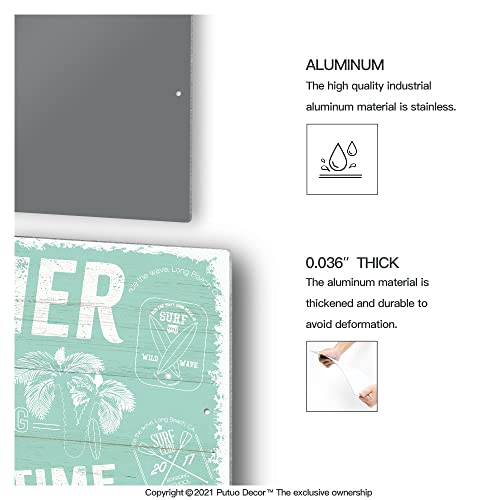 - Putuo Decor Beach Sign, Retro Plaque Metal Decor for Bedroom, Study, Bathroom, Living room, 12×8 Inches Aluminum Wall Sign, Gift Ideas – Summer Time