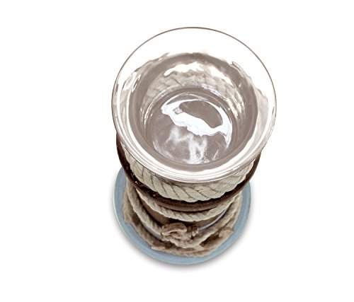 Elevate your home decor with an eye-catching tabletop centerpiece. Feel the ocean vibe with this Evian coastal home decor wooden candle holder. Perfect indoor and outdoor candle holder crafted to enhance the aesthetic design of your home. It features a decorative nautical rope, rustic anchor, and glass candle holder. Set your room with this cool coastal bedroom decor.
