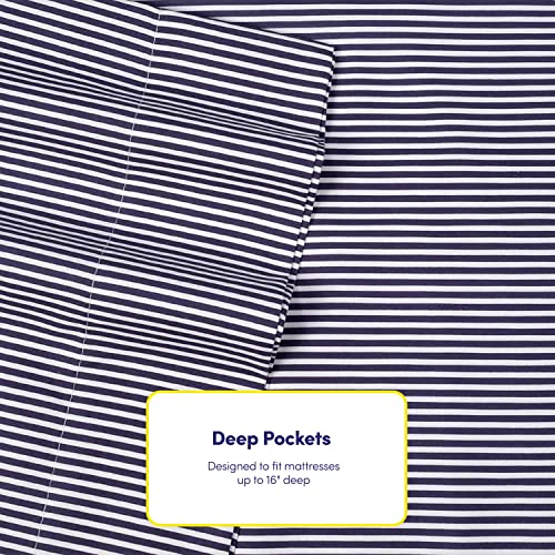 Queen Sheets Stripe Navy – 6 Piece 1500 Supreme Collection Fine Brushed Microfiber Deep Pocket Queen Sheet Set Bedding – 2 Extra Pillow Cases, Great Value, Queen, Classic Stripe Navy
