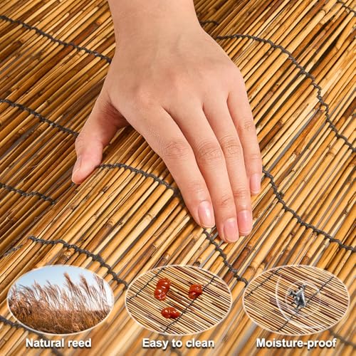 - Pure Natural Reeds:Our premium reed screen are all hand made,using the high quality reed from the monsoon climate of medium latitudes,these reed fencing are made from carbonized reeds,which are stronger and safer than plastic reeds,Each one is clean, strong and straight,The reed fence are naturally water resistant and will last for years.