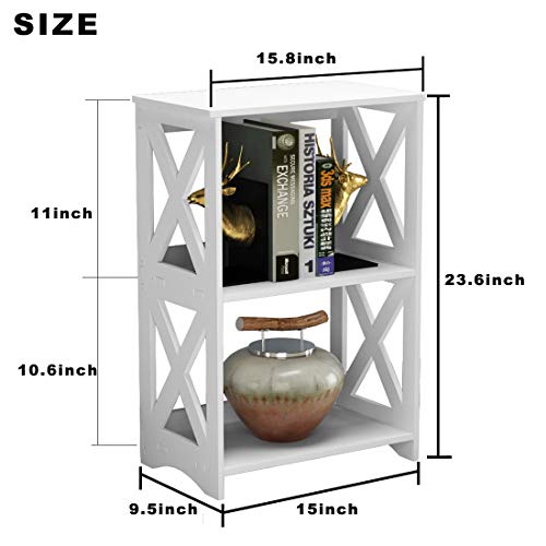 - Rerii Side Table Set of 2, End Table & Bedside Nightstand 3 Tier, Versatile Small Bookshelf for Bedroom, Living Room, Bathroom Storage, White