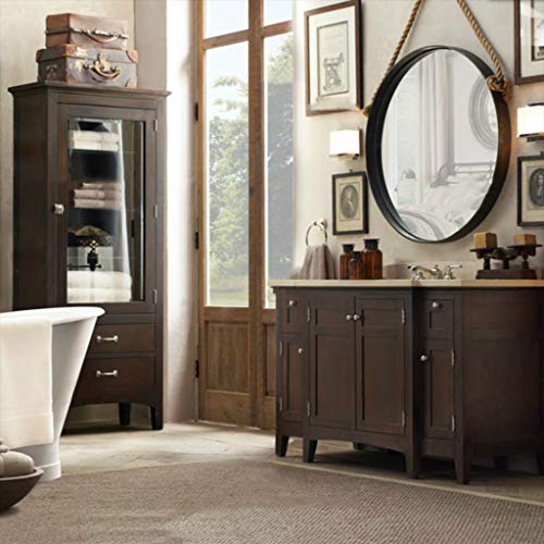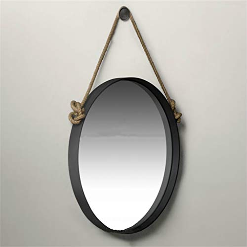 Retro Metal Wall Hanging Mirror with Hemp Rope Round Decorative Bathroom Mirrors Creative Makeup Shaving Iron Mirrors Large (Color : Black, Size : 80cm)