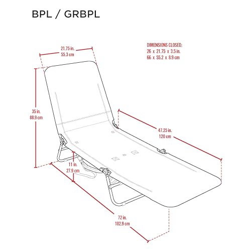 Rio Beach Portable Lay Flat Folding Backpack Beach Lounge Chair with Backpack Straps and Storage Pouch, Blue and Red