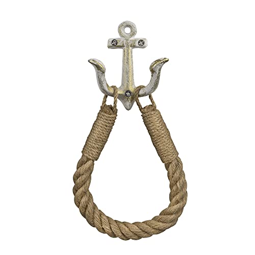 ROXLLGJC Nautical Rope Toilet Paper Holder Coastal Towel Holder with Metal Hook for Bathroom Decor (White)