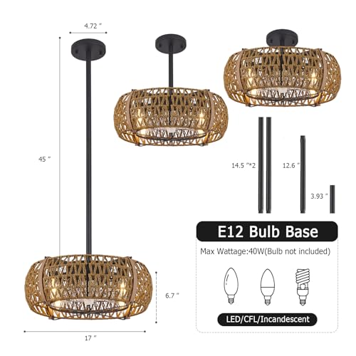 - UNIQUE STYLE: This Farmhouse Caged Ceiling Fan with Lights not just a simple fan, it can be functioned as Pendant Light or flush mount ceiling light, you can style it to match your places.