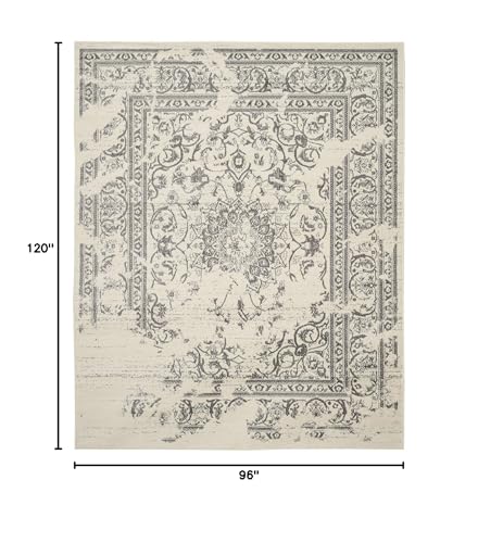 SAFAVIEH Area Rug 8×10 – Adirondack Collection – Large – Ivory & Silver, Oriental Distressed Design, Non-Shedding & Easy Cleaning, Ideal for Living Room, Bedroom, Office, Dining Space (ADR101B)