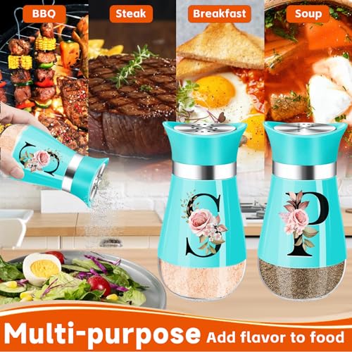 Salt and Pepper Shakers Set, 4 oz Teal Kitchen Accessories and Decor, Stainless Steel & Glass Spice Dispenser Classic, Refillable Design, Farmhouse Salt Pepper Shakers Cute Kitchen Decoration (Blue)