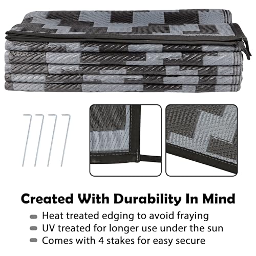 - VERSATILE AND FUNCTIONAL: These versatile and functional rugs are great option to elevate any entertainment space including patio, deck garden, beach, picnic, rv camping, garage, kids rooms. Comes with corner loops and 4 stakes for easying secure to the ground.