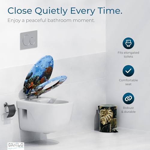 ![SANILO Wooden Toilet Seat with Soft Close [ELONGATED] - Decorative, Quiet & Slow Close Molded Wood Seat - With Strong Bumpers & Hinges - Adjustable Fit - Ocean - Image 4](https://m.media-amazon.com/images/I/51w2AB-MT6L._SL500_.jpg)