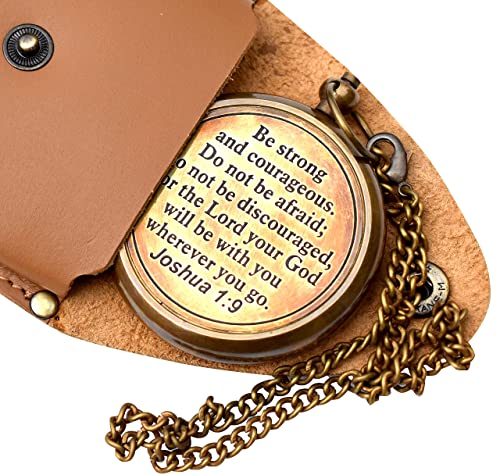 - Be Strong and Courageous (Joshua 1:9) Brass Compass with wooden Box-Engraved Scripture Prayer Compass Religious Gift for Men & Women – Baptism, Confirmation, Communion Compass for Boys Graduation Gift