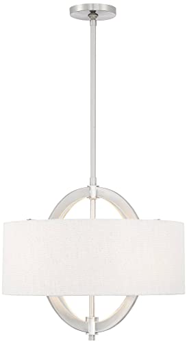 Possini Euro Design Saturna Brushed Nickel Drum Pendant Chandelier 21" Wide Modern Oatmeal Linen Shade 4-Light Fixture for Dining Room House Foyer Kitchen Island Entryway Bedroom Living Room