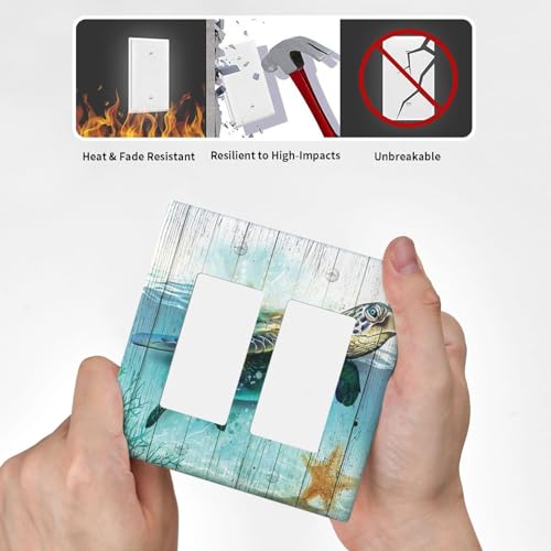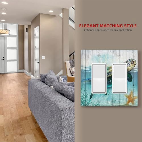 Sea Turtle Ocean Rustic Wood 1 Gang Rocker Light Switch Cover Decorative Single Decora Outlet Wall Plate Faceplate Switchplate GFCI for Farmhouse Bathroom Bedroom Decor