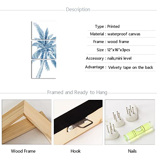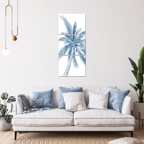 sechars 3 Piece Palm Tree Canvas Wall Art Modern Navy Blue Bathroom Decor Tropical Botanical Painting Picture Print Coastal Theme Living Room Blue Decorations