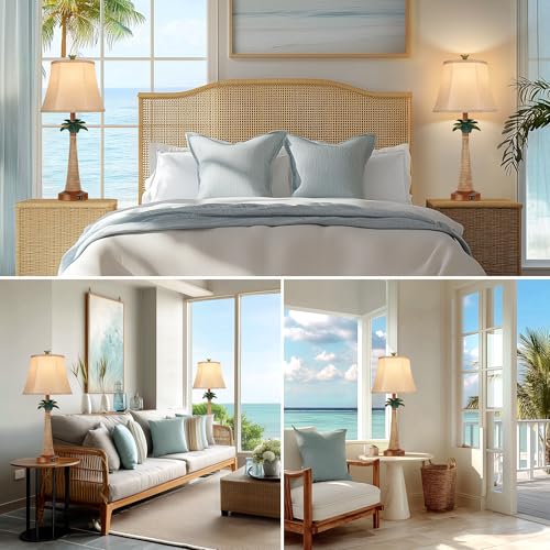 Hamucd Set of 2 Coastal Palm Tree Table Lamps with 2 USB Ports for Living Room Beach Nautical Bedside Lamps for Bedroom Tropical Nightstand Lamps for Home Decor