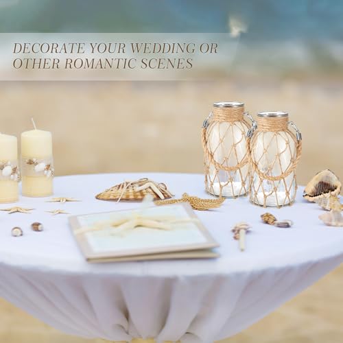 - Costal Rope Net Design: our rustic vase creatively uses jute rope net to wrap a glass vase, an aesthetic combination of clear glass and jute, simple but elegant, which can enhance the decorative style and rustic atmosphere of your interior home space; The rustic vase is also used to store sea shells and made your wedding tables look so cute