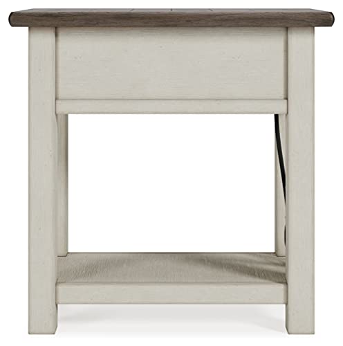 Signature Design by Ashley Bolanburg | Farmhouse Chair-Side End Table – USB Charging Ports, Drawer, Two-Tone Light Brown & Whitewash