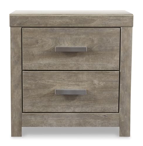 Signature Design by Ashley Culverbach Modern 2 Drawer Nightstand with 2 USB Charging Stations, 24.37" Tall, Weathered Gray