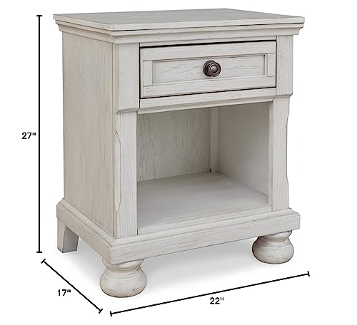 Signature Design by Ashley Robbinsdale Coastal 1-Drawer Nightstand with Cubby Storage, 26.75" Tall, White