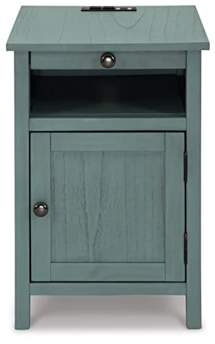 Signature Design by Ashley Treytown Casual Compact Chairside End Table with a Storage Cabinet, Open Cubby Shelf, Pull-Out Tray & USB Charging Ports, Blue