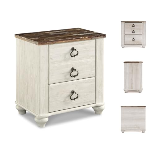 Signature Design by Ashley Willowton Farmhouse 2 Drawer Nightstand with USB Charging Ports, 25.67" Tall, Whitewash