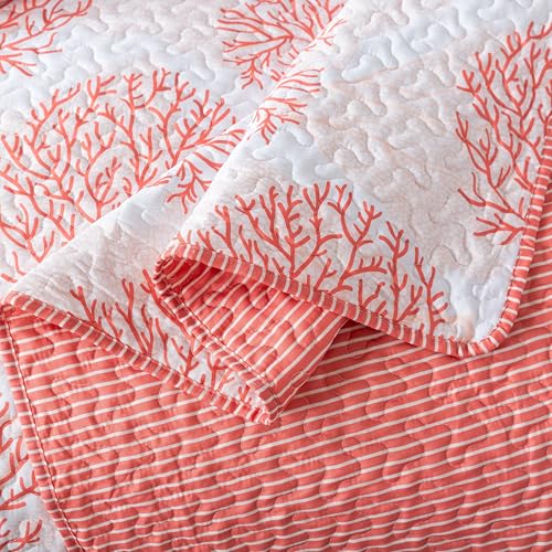 Soul & Lane Coastal Quilt Set – Twin and 1 Sham, Quilted Coastal Bedspread with Beach Theme, Ocean Bedding Set, Summer Nautical Quilt, Beachy Comforter with Tropical Motif, Sea of Coral
