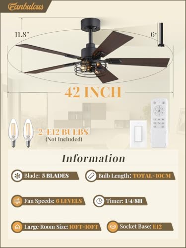 - Classic Farmhouse Decor Design: This 42 Inch caged rustic ceiling fan is peferct house decor which combines design and function. We also provide 2 double-sided color blades for you to choose to suit the modern style