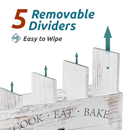Suli Extra Large Kitchen Utensils Holder with 4 Compartments, Wooden Utensil Organizer for Kitchen Countertop, Farmhouse Decor, Rustic Cooking Utensil – White grain