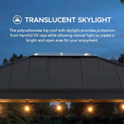 - Light Up Your Outdoor Patio: This gazebo features a translucent polycarbonate skylight that protects against harmful UV rays while allowing natural light in to create a bright and open area for your enjoyment.