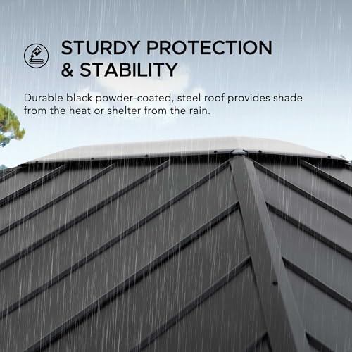 - Sturdy Protection & Stability: Durable black powder-coated steel roof offers shade from heat or shelter from rain, while premium galvanized steel posts and beams with a natural-looking wood grain finish provide a stunning contemporary aesthetic.