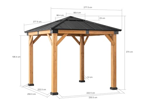 - 【Stability, Protection & Privacy】- The resilient brown steel and polycarbonate hip roof combined with the premium cedar wood frame provide shade and keep water out. A dual rail system is included to support mosquito netting and privacy curtains (sold separately).