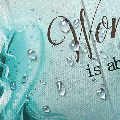 Teal Mermaid Shower Curtain, Mermaid Tail Quote Inspirational Fabric Shower Curtains Set for Little Girls Women Bathroom, Nautical Ocean Theme Restroom Decor Accessories with Hooks 60X72inches