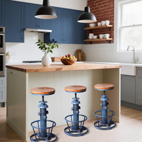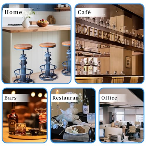 Topower Aged Steampunk Deco Industrial Round Bottom Adjustable Height Cafe Coffee Retro Vintage Fire Hydrant Design Pub Kitchen Counter Bar Stool (Antique Blue, Wooden Top)
