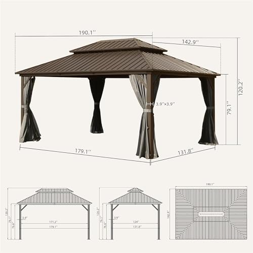 - Create Enduring Memories: With a roomy layout, this 12x16FT gazebo delivers the ideal setting for family reunions, festivities, and tranquil moments with friends, all under one cover.