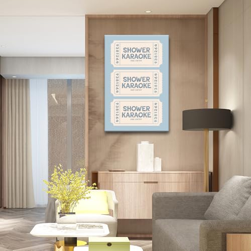 Trendy Blue Posters Funny Shower Karaoke Ticket Wall Art Decor Retro Preppy Coastal Beachy Canvas Prints Coquette Cream Singing Sign for College Dorm Teen Girl Bathroom Aesthetic 12x16inch Unframed