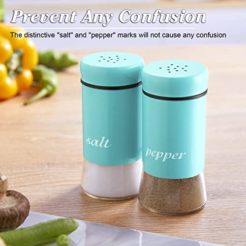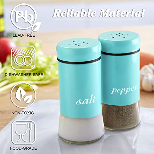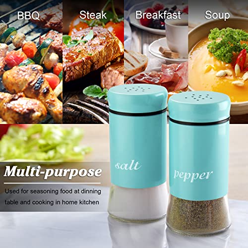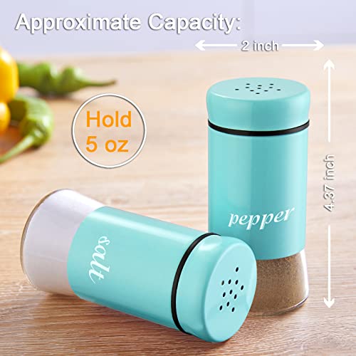 Turquoise Kitchen Decor & Teal Kitchen Accessories- 5 oz Farmhouse Glass Salt and Pepper Set for Cooking Table, RV, BBQ, Easy to Clean & Refill