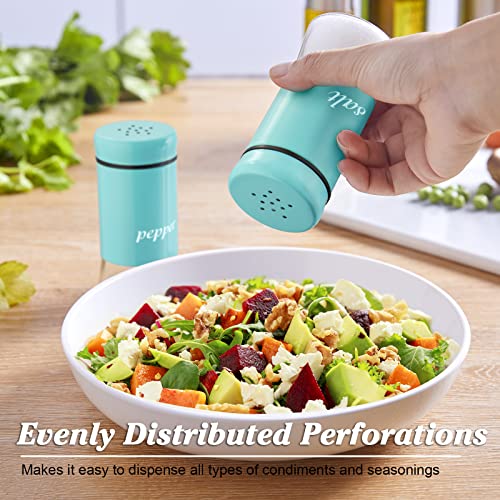 Turquoise Salt and Pepper Shakers – Turquoise Kitchen Decor & Teal Kitchen Accessories- 5 oz Farmhouse Glass Salt and Pepper Set for Cooking Table, RV, BBQ, Easy to Clean & Refill