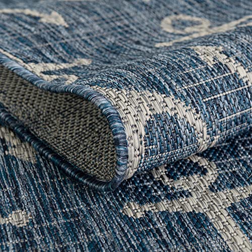 Unique Loom Outdoor Coastal Collection Area Rug – Ahoy (2' 7" x 12' Runner, Blue/ Ivory)