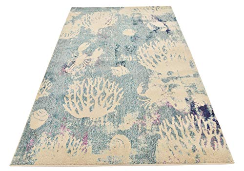 Unique Loom Positano Collection Coastal Modern Coral Lobster Shells Light Blue Area Rug (5' x 8')