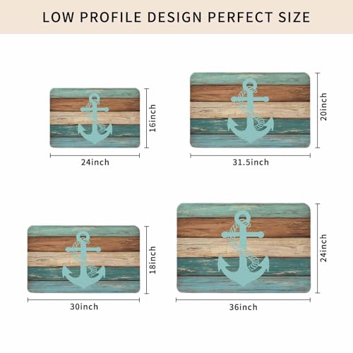 Vandarllin Blue Nautical Anchor Rustic Old Barn Wood Doormats Kitchen Area Rugs Non-Slip Indoor/Outdoor/Front Door Mat,24 x 36 Inch,Teal Turquoise Green Brown