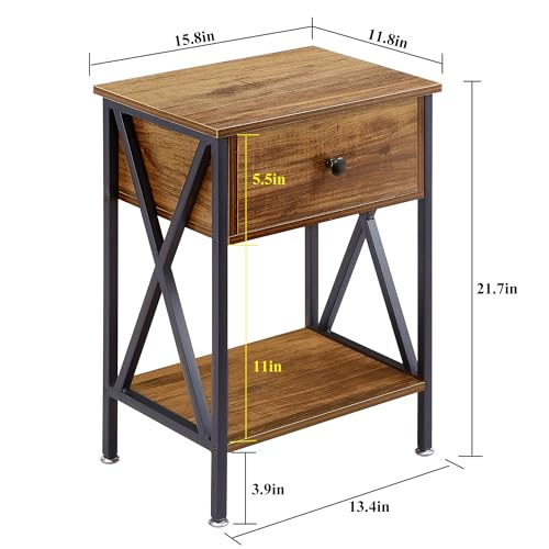 VECELO Nightstands Set of 2, Modern Bedside End Tables, Night Stands with Drawer and Storage Shelf for Living Room Bedroom, Industrial Metal Frame