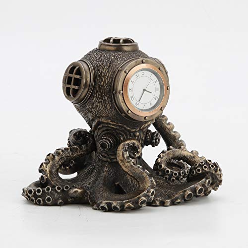 Veronese Design 5.2 Inch Steampunk Octopus Diving Bell Clock Men's Gift Cold Cast Bronzed Resin Statue