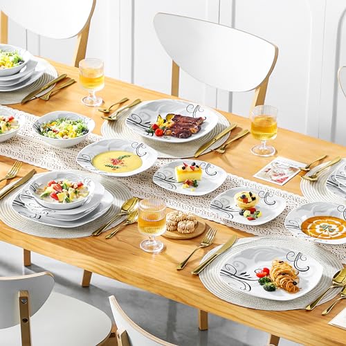 - High Quality: VEWEET porcelain dish set is made of durable premium stoneware, which make dinnerware much harder and more resistant to cracking, perfectly compatible with cold and hot food without worry about nicks, cracks and scratches