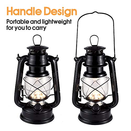 Vintage LED Hurricane Lantern, Warm White Battery Operated, Antique Metal Hanging With Dimmer Switch, 15 LEDs, 150 Lumen for Indoor or Outdoor Usage (Black)