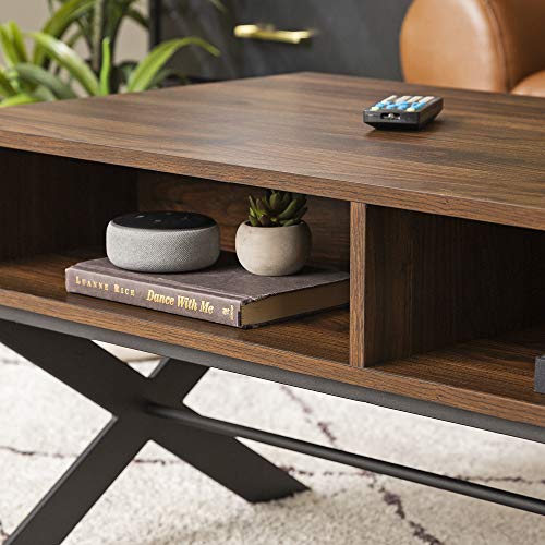 Walker Edison Gehry Modern X Leg Coffee Table with Open Storage, 42 Inch, Dark Walnut