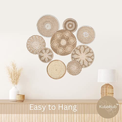 Kubohub Wall Basket Decor Set Of 9 – Hanging Handmade Seagrass Baskets | Woven Round Boho, Coastal and Farmhouse Wall Decor | Tan and White Basket Wall Art Room Decor