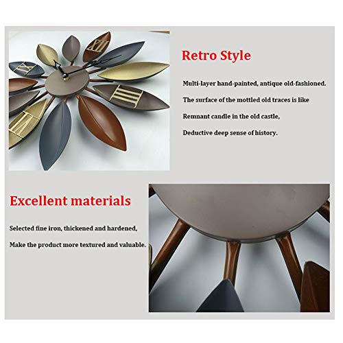 - ★ Handmade wrought iron wall clock, petal leaf shape, golden three-dimensional ancient Roman numerals, make the wall clock more European and American style, old and fashionable.