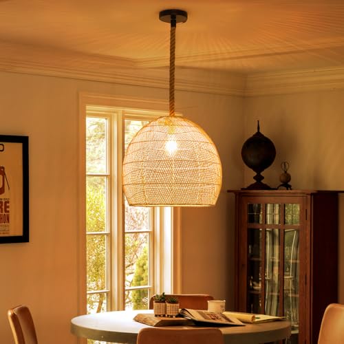 WalmHomie 1 Light Rattan Chandelier, Large 19.68''W Boho Woven Lamp Shade Lampshade for Restaurants, Handmade Rope Pendant Light, Coastal Wicker Hanging Lighting Fixture for Kitchen Living Room Bars