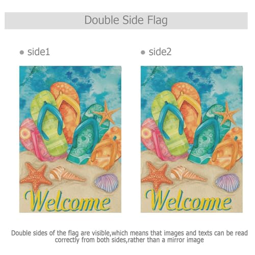 Wamika Summer Beach Flip Flops Garden Flag 12 x 18 Double Sided Tropical Nautical Starfish Shell Sand House Yard Flags Welcome Hello Summer Outdoor Indoor Banner for Party Home Decorations